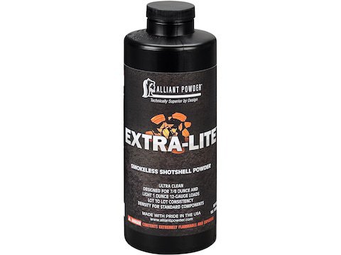 Extra-Lite is a new shotshell propellant that provides less cost, less recoil and less headaches for those 12 gauge shooters transitioning from 1 1/8 ounce to 7/8 and 1 ounce loads Many shooters are looking for a powder that will have a density that allows use of standard components (wads and cases). These same shooters also want pressure levels that guarantee complete combustion across a broad temperature range while still being clean burning. Well… now they have it with Extra-Lite.
