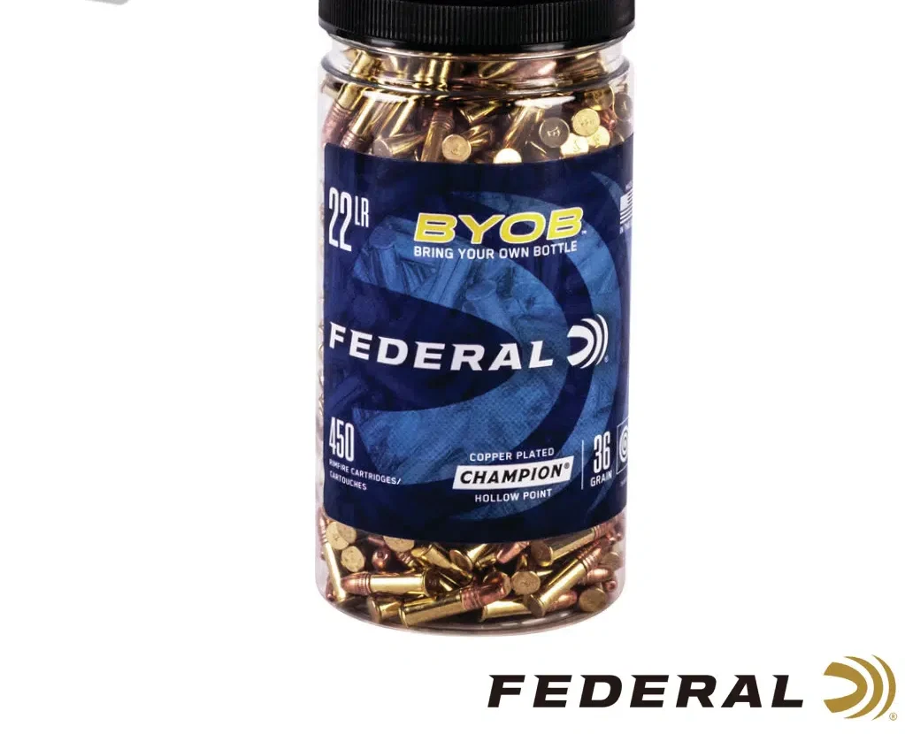 There’s a party at the range, so BYOB. Federal® BYOB™ rimfire buckets and bottles are bulk packs that stack, store and carry easily. They’re loaded with high-quality 17 HMR, 22 LR or 22 WMR rounds that are perfect for a fun day at the range or in the field. Shooters can remove the packs’ lids completely or keep them on to use the easy-pour feature.