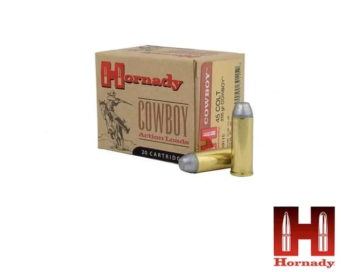 Action Shooters demand total reliability from their ammo — and Hornady delivers! Like all Hornady ammo, our Cowboy™ rounds are engineered to perform flawlessly. Thanks to our swaged bullets, the projectile flattens at the target instead of fragmenting. Our propellants are the cleanest-burning, and the diamond knurling means the bullet is lubed the entire length of the bearing surface. It all adds up to the highest quality ammo on the market.