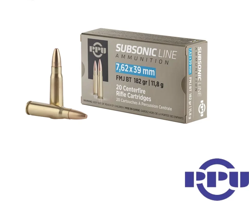 PPU Subsonic 7.62x39mm 182gr. FMJ (20rds & 500rds)
