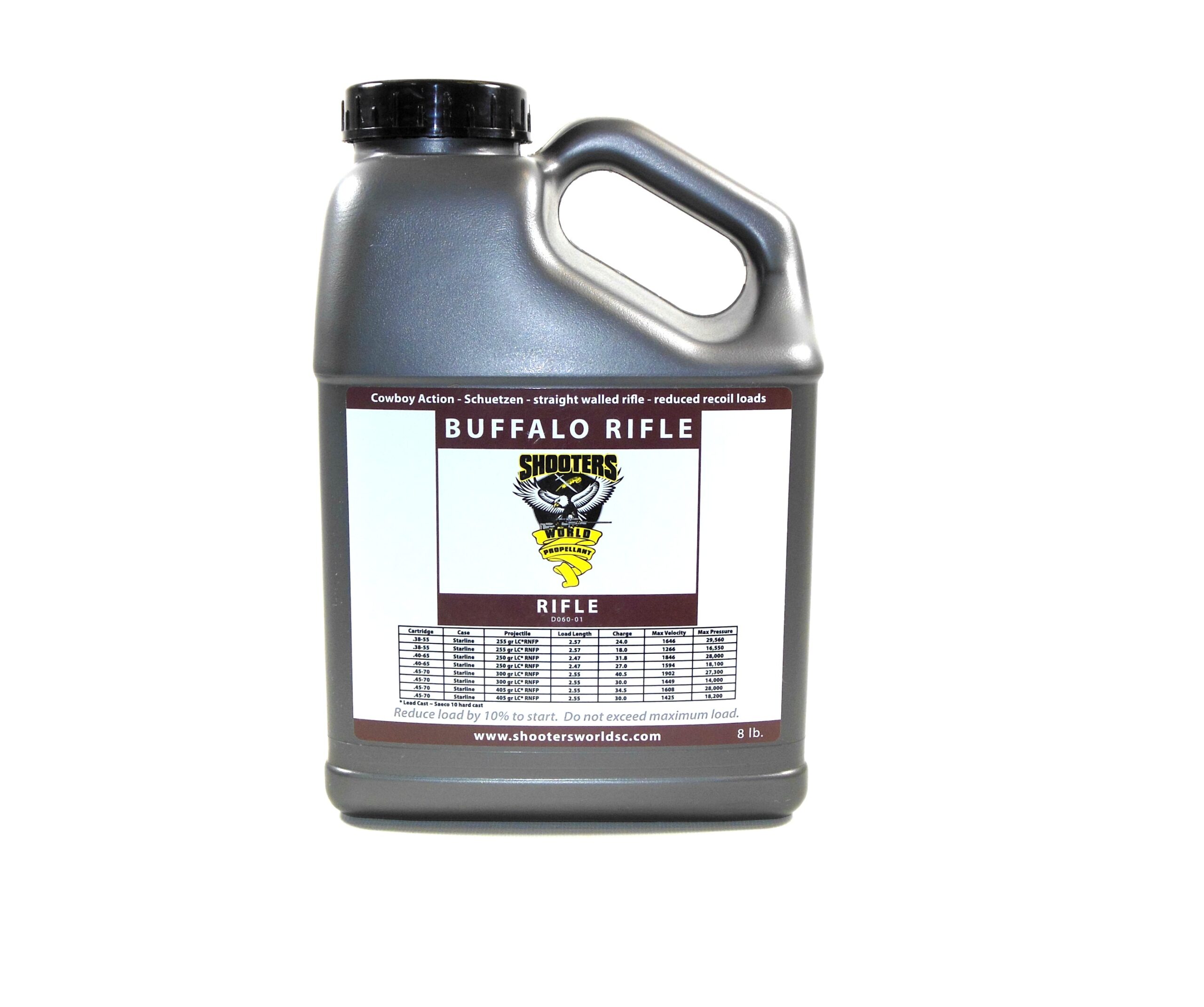 Whether the loader desires to shoot cast lead or standard jacketed bullets, this propellant can greatly expand the utility of a hunting rifle. Now, a .30-06 can be used for plinking with the kids! Or a .243 for rabbit hunting! Safe, reduced loads can be economically loaded and enjoyed by the whole family. This propellant has a burn rate optimized for straight walled rifle cartridges, as well as reduced recoil/reduced energy loads in virtually all rifle applications. Chambers where the bullet diameter is virtually the same as the internal case diameter, such as .38-55 Winchester, .45-70 Gov’t and numerous Schuetzen calibers, will benefit from Buffalo Rifle. Despite Buffalo Rifle being an extruded propellant, we have found good flow characteristics through a volumetric powder dump. The grain is narrow, and cut short. While some reloaders insist on weighing each powder charge, we did not find that extra time necessary when loading this propellant. The standard test load for this propellant is .30-06 Springfield, a 168 grain bullet, and ONLY 22 grains of propellant. This loading density is less than 50%! Yet this propellant burns extremely well in this condition. The surface of this propellant holds no deterrent or burn rate modifier. Therefore, it ignites quite consistently with low loading densities in standard rifle loads. This same ignition characteristic aids accuracy when used with cast lead bullets and long throated chambers.