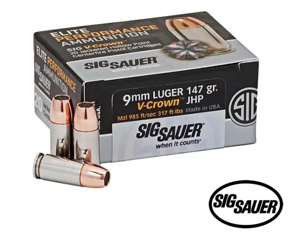 Sig Sauer Elite V-Crown 9mm 147gr. JHP (20rds & 200rds)