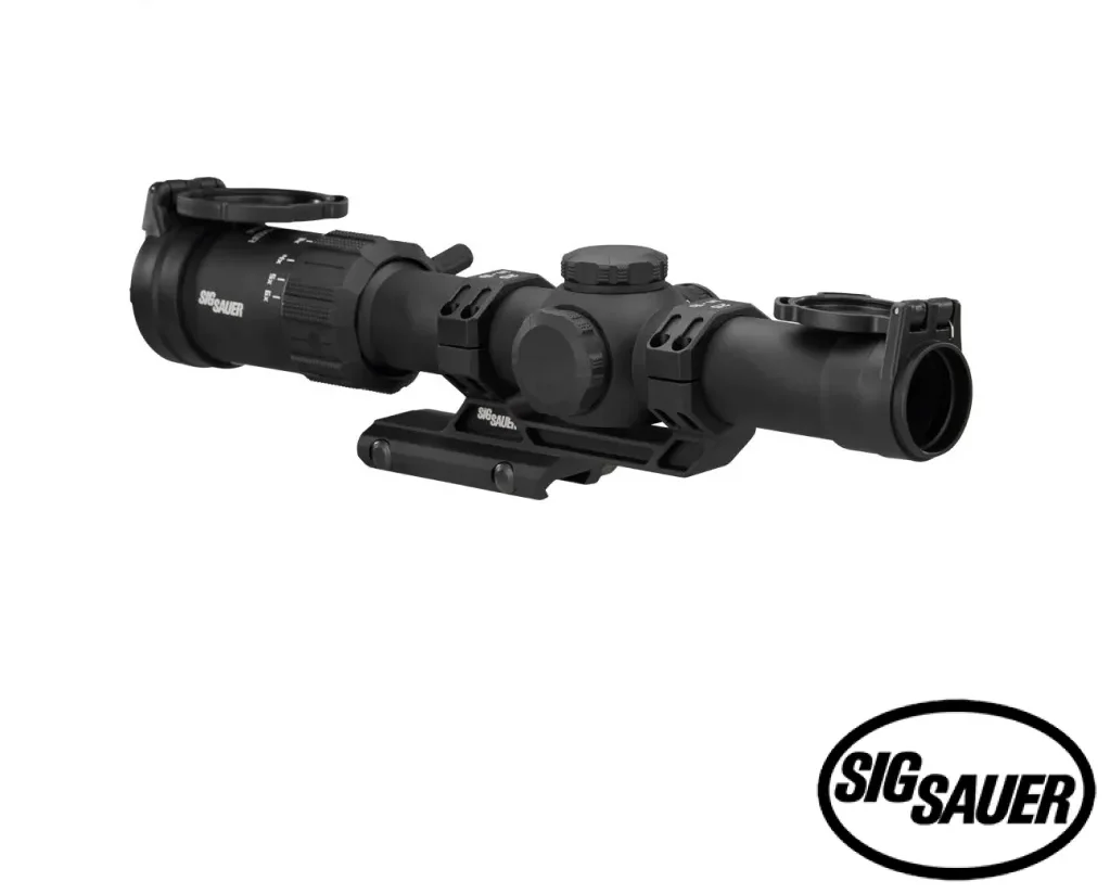 Sig Sauer’s Tango MSR Riflescope is a perfect addition to an AR-type platform, but works equally well on virtually any other modern sporting rifle. It utilizes a high performance 6x optical systems with low dispersion glass for a crystal clear sight picture and excellent light transmission. The Tango MSR also comes equipped with an illuminated MSR-BDC6 SFP reticle, which is composed of a precise, 1-MOA free floating center-dot in the middle of an illuminated 10.85 MOA semicircle. Directly below the center-dot and semicircle is a “Christmas Tree” of holdover points and hash marks, allowing you to effectively compensate for bullet drop and wind drift at extended ranges. Other features of the Tango MSR include an integrated throw lever to seamlessly transition between magnifications, and an Alpha-MSR cantilevered scope mount is included as well.