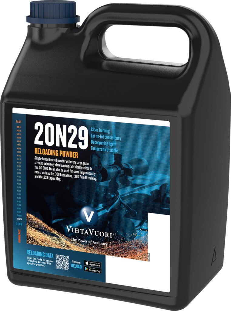 The burn rate is slower and the grain size is greater than in the N100 series powders. Vihtavuori 20N29 Powder For Sale is most often employed in large caliber and magnum applications with heavy bullets, as well as long-range target shooting. It is most suited for the.50 BMG, although Vihtavuori 20N29 Powder has also proven effective in the.300 Lapua Magnum and.30-378 Weatherby Magnum.